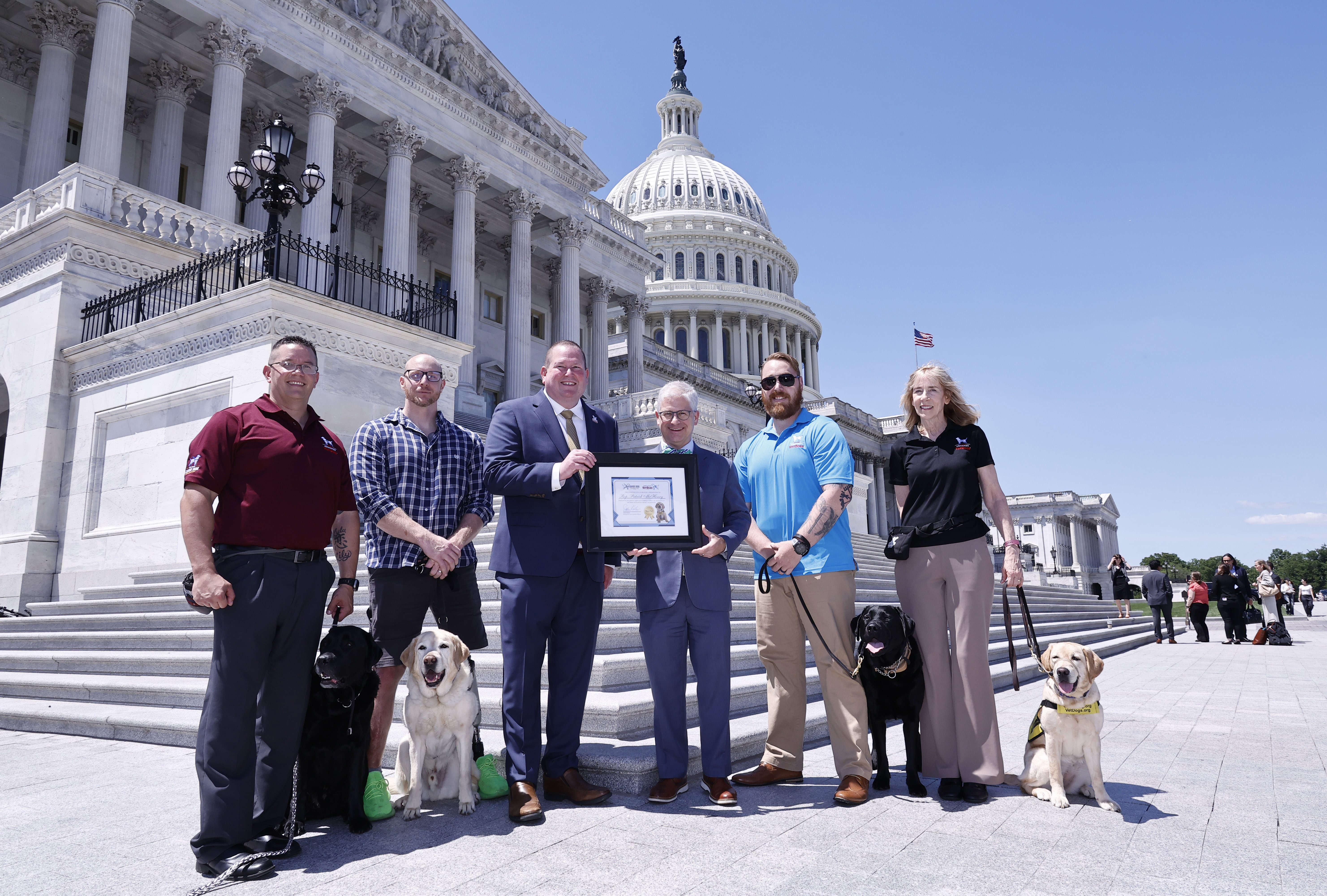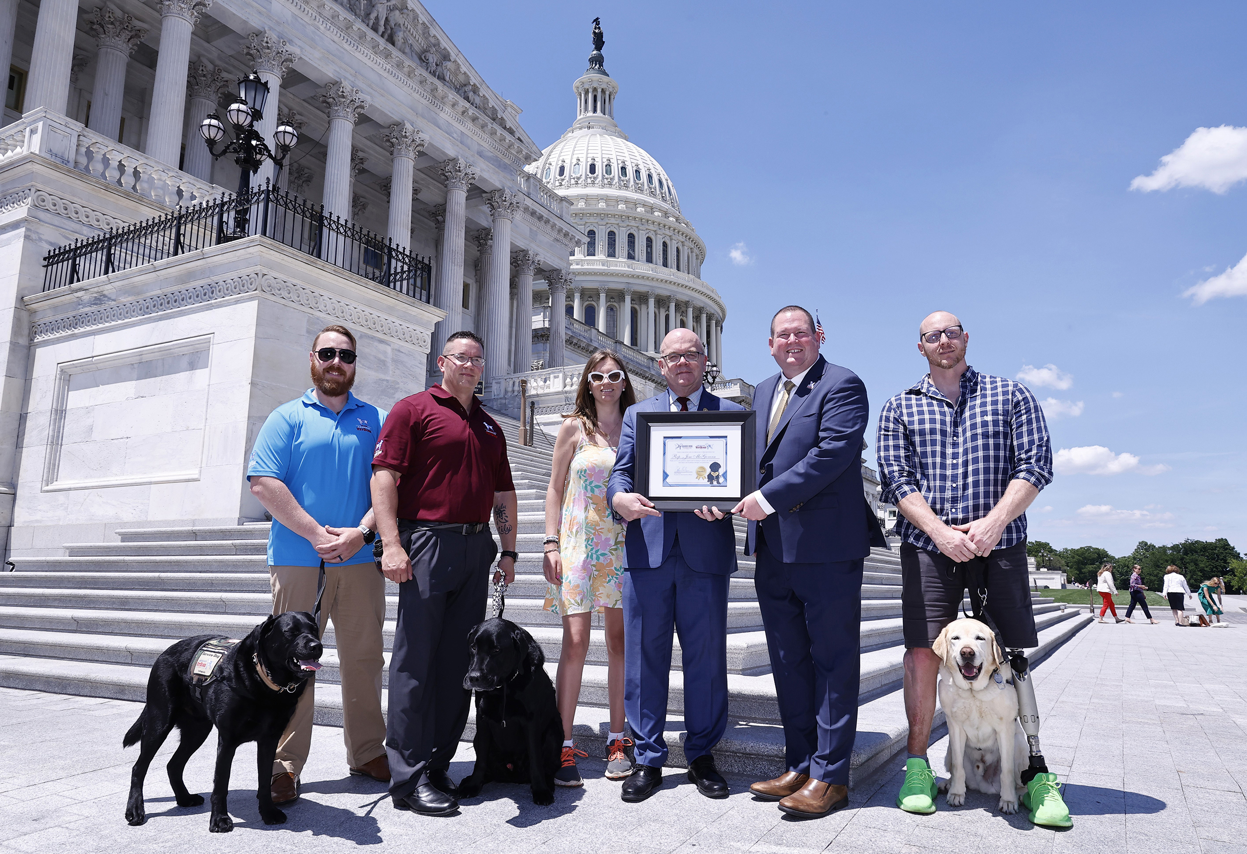 The bipartisan legislation authorizes the Department of Treasury to mint a three-coin commemorative series to honor the service working dogs provide to society. All surcharges from the sale of the coins will go to America’s VetDogs to ensure the organization continues to advance its mission to provide life-changing service dogs to veterans, active-duty service members, and first responders, free of charge.