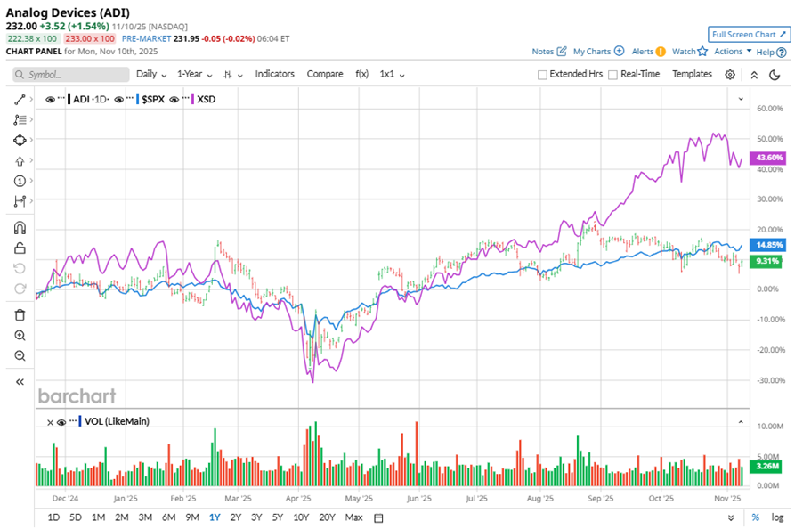Shares of this global semiconductor leader have underperformed the broader market over the past year. ADI has gained 2.8% over this time frame, while the broader S&P 500 Index ($SPX) has rallied nearly 14%. In 2025, ADI’s stock rose 9.2%, compared to the SPX’s 16.2% rise on a YTD basis.