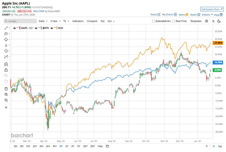 Shares of the tech giant have lagged behind the broader market over the past year. The stock has returned 13.8% over this time frame, while the broader S&P 500 Index ($SPX) has rallied around 16%. Over the past six months, AAPL has gained 22.3%, while the SPX is up 9.2%.
