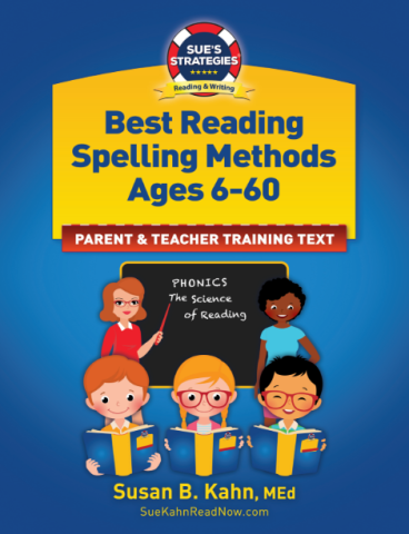 Would you help a loved one or a group of children become happier, more productive people? For $35.00, you can find the tools to enrich their lives in Best Reading Spelling Methods, Ages 6 - 60, Parent & Teacher Training Text. Use Sue’s Strategies® to give the gift of reading and writing.