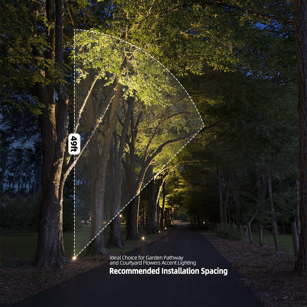 With a focused 25-degree beam spread, this spotlight is ideal for highlighting architectural features, foliage, or other accent elements. The front lens can tilt 90° for precise aiming. Just push the stake firmly into soft ground or utilize the integrated mounting bracket.