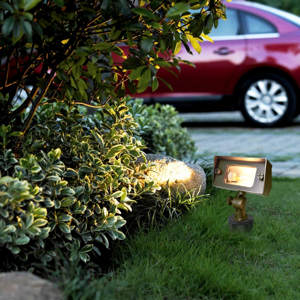 The Outdoor Brass Landscape Lighting Spotlight for Yard packs versatility and durability into a compact, low-voltage fixture.