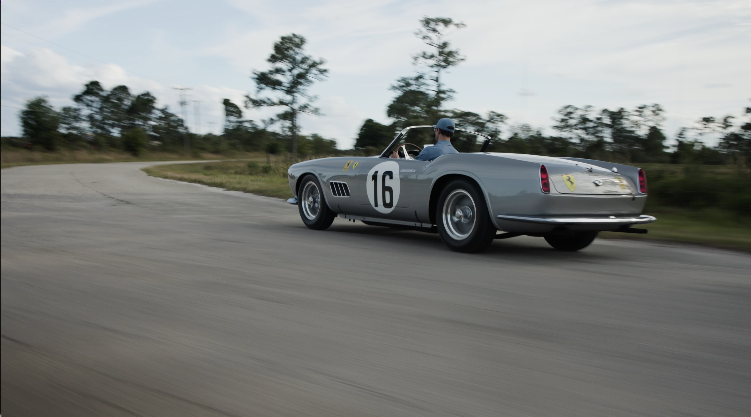 - The 1959 Ferrari 250 GT LWB California Spider Competizione on the road ahead of Amelia Auction
