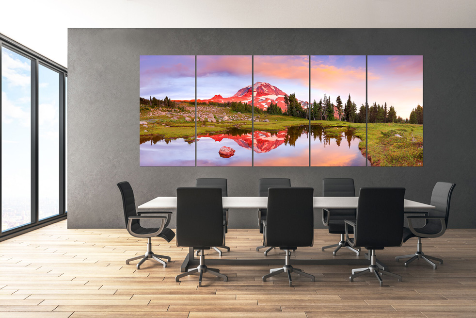 Choosing the sizing for large-scale wall art for your home or office space can be daunting. It can be hard to imagine precisely how large art prints will fit into the space and complement other furnishing and design elements. For this reason, we offer a mock-up service so you can see exactly how to decorate large walls with photograph sizes and dimensions that work with your space.
